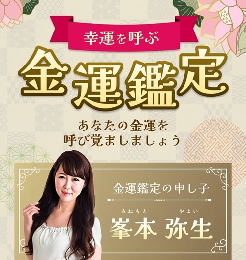 しかし峯本弥生先生が在籍する金運鑑定サイトは